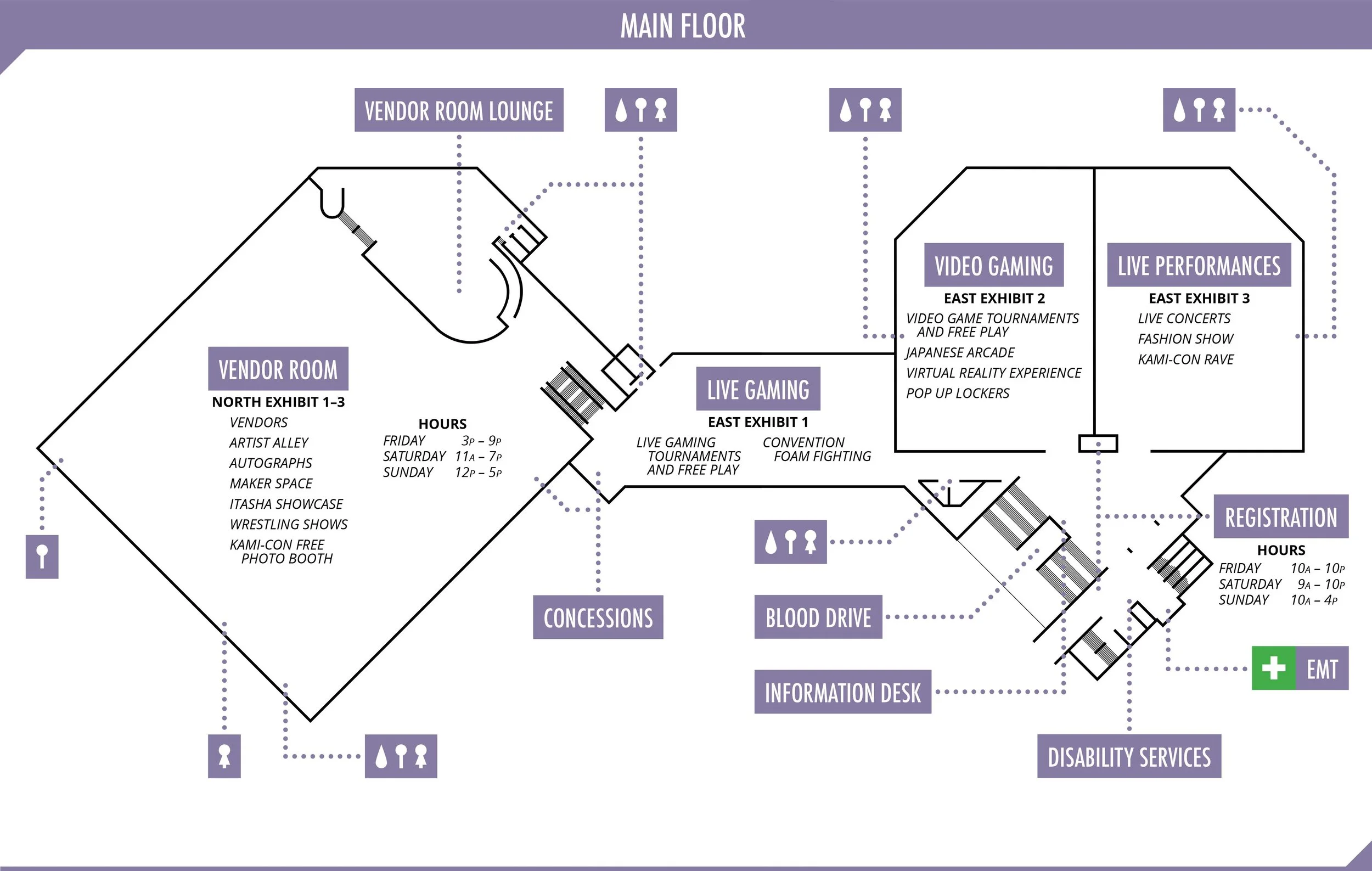 Kami-Con will be held in East Exhibition Halls in the BJCC (Birmingham-Jefferson Convention Complex) in Birmingham, AL.